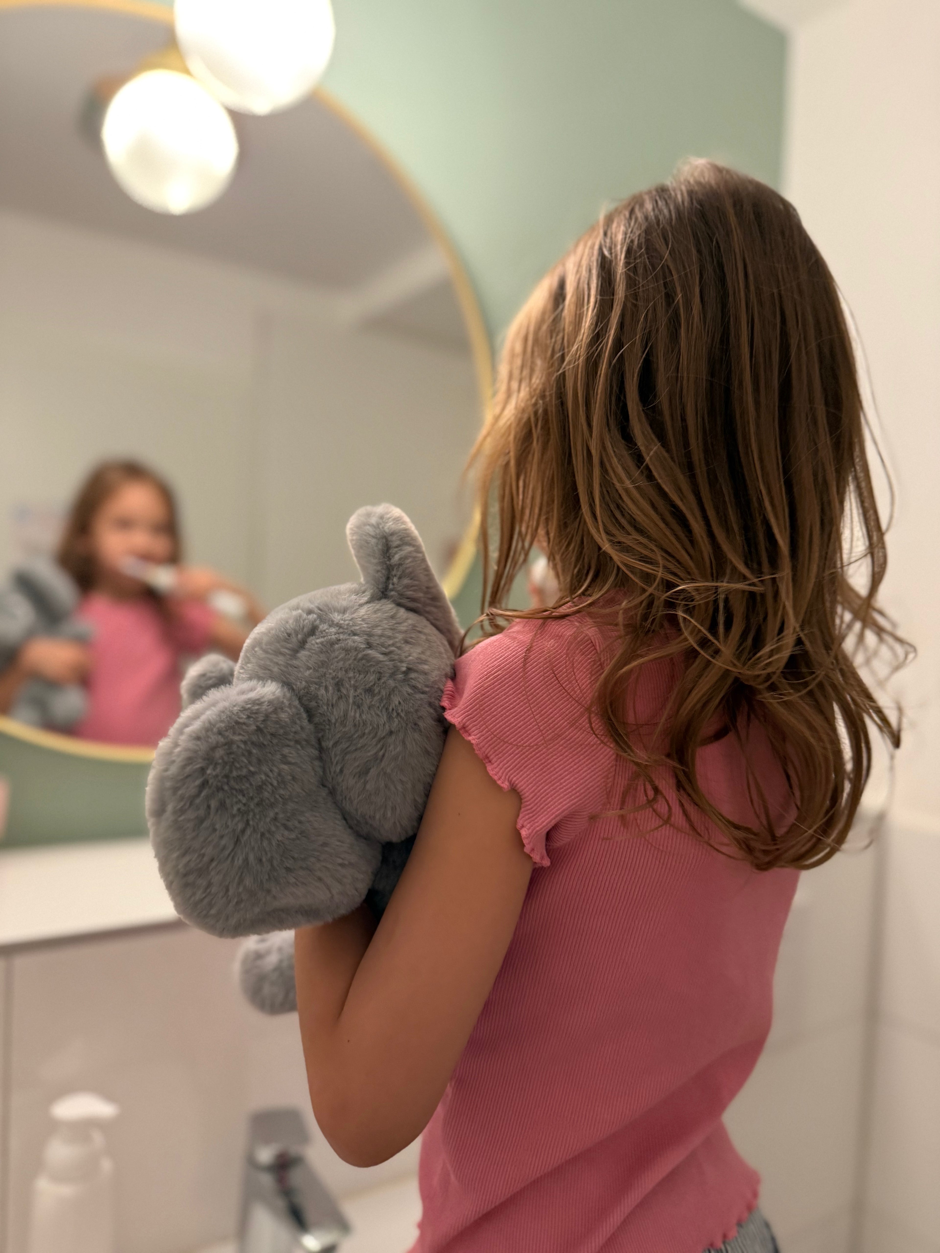 Beim Zähneputzen, Anziehen oder unterwegs: Der Elefant ist immer dabei und gibt Sicherheit in all den kleinen Momenten.
